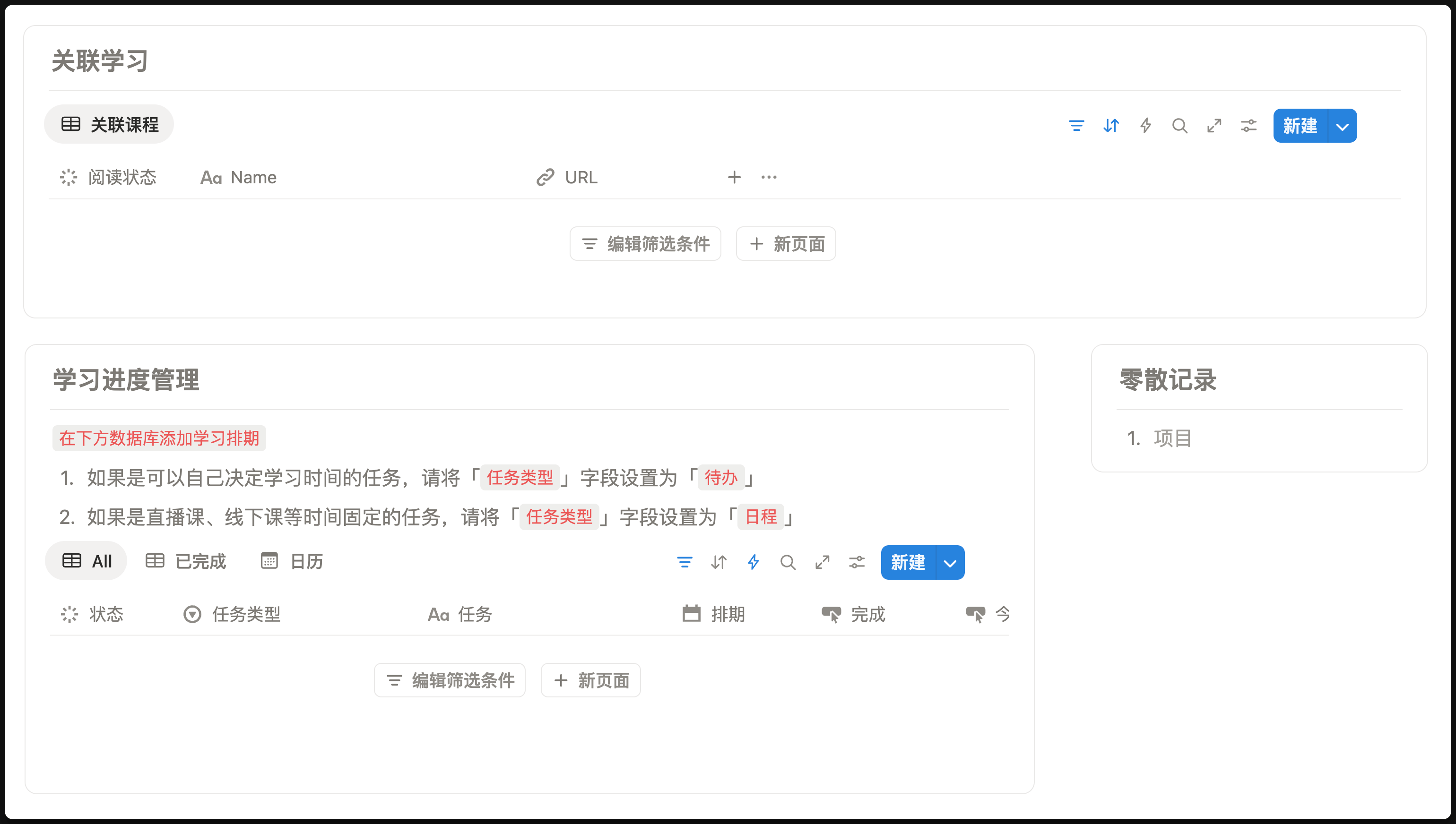 - 课程和刷题混在一起:你可能同时在学课程、又在刷题,这是两个独立的「项目」,混在一个任务列表里会很乱