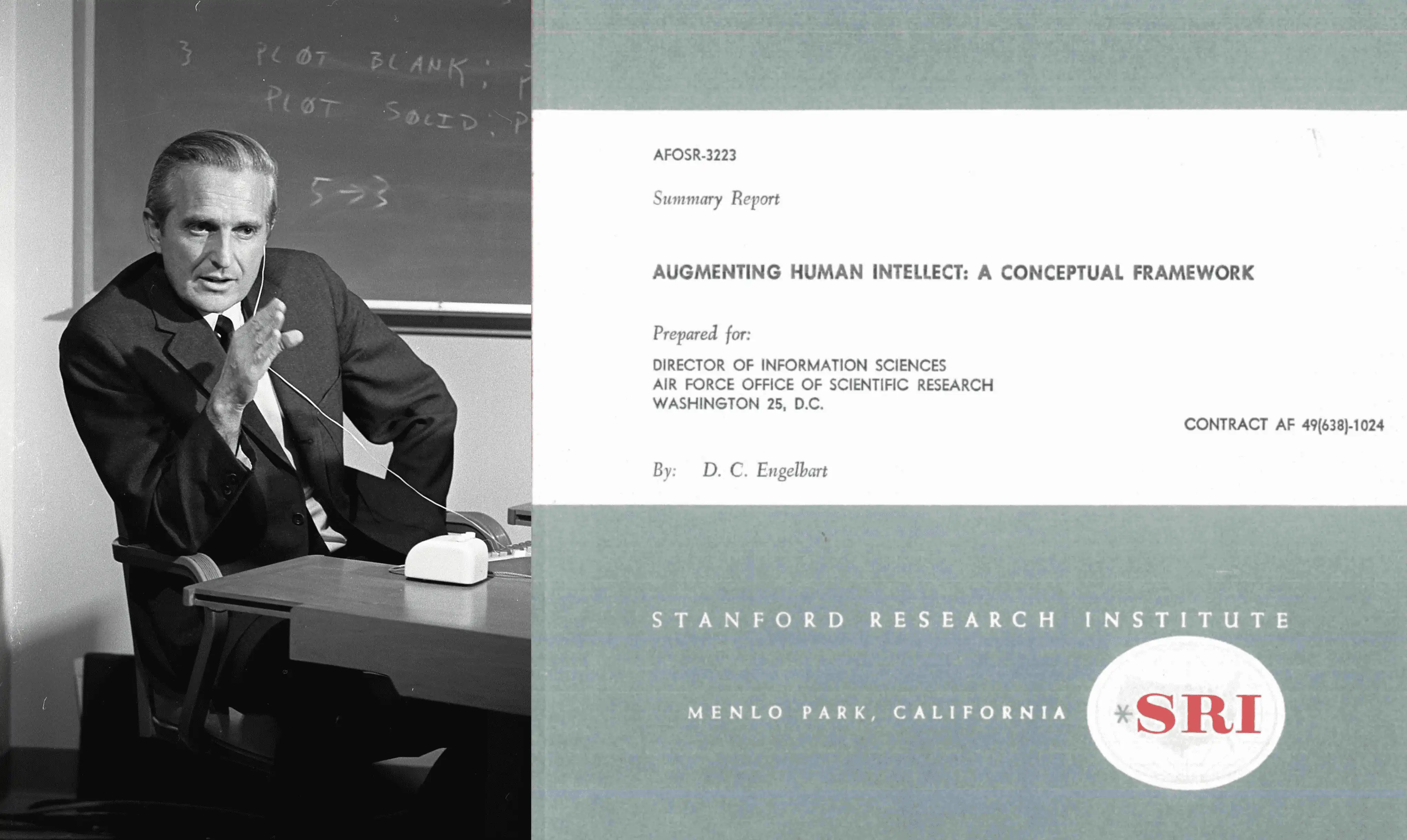 提出了「所有演示之母」的人机交互先驱 Douglas Engelbart(1925-2013) ,在 1962 年著下了《增强人类智力》这篇论文 ,它是启发 Ivan Zhao 产生这些思考的核心原因。