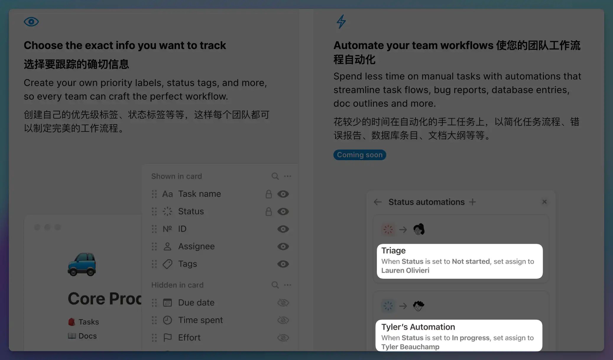 例如当截止日期临近,自动向团队成员发送提醒通知;当 Select 字段被标记为已提交,自动将该文档的负责人(Person 字段)划分给下一个员工;当 Checkbox 被勾选,自动将任务的完成时间写入日期字段(Date)之中。
