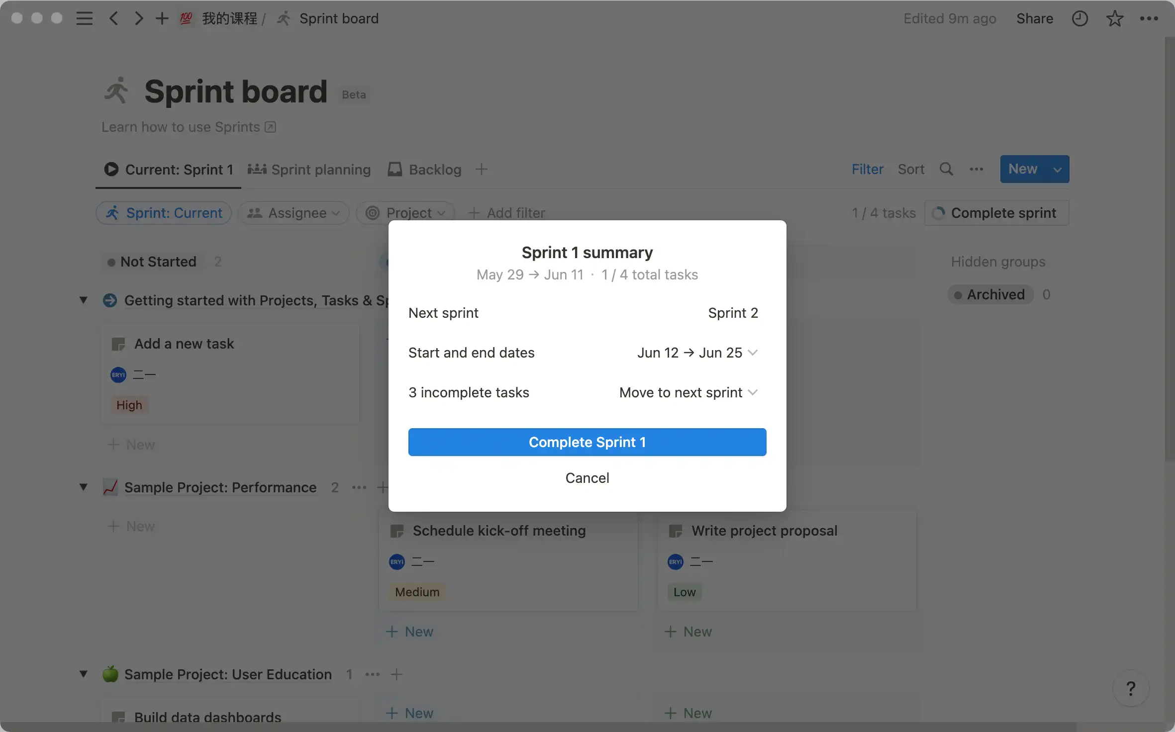现在的 Projects 模板有一个名为 Sprint 的敏捷项目管理特性,暂时还只能在特定的模板中生效,但之后必然会下放到一般的数据库之中。同时这个模板也算是 Notion 官方提供的一种「示范」,并非让你照搬照抄,起到的更多是激发好奇心、然后引导你进行尝试的一种手段。