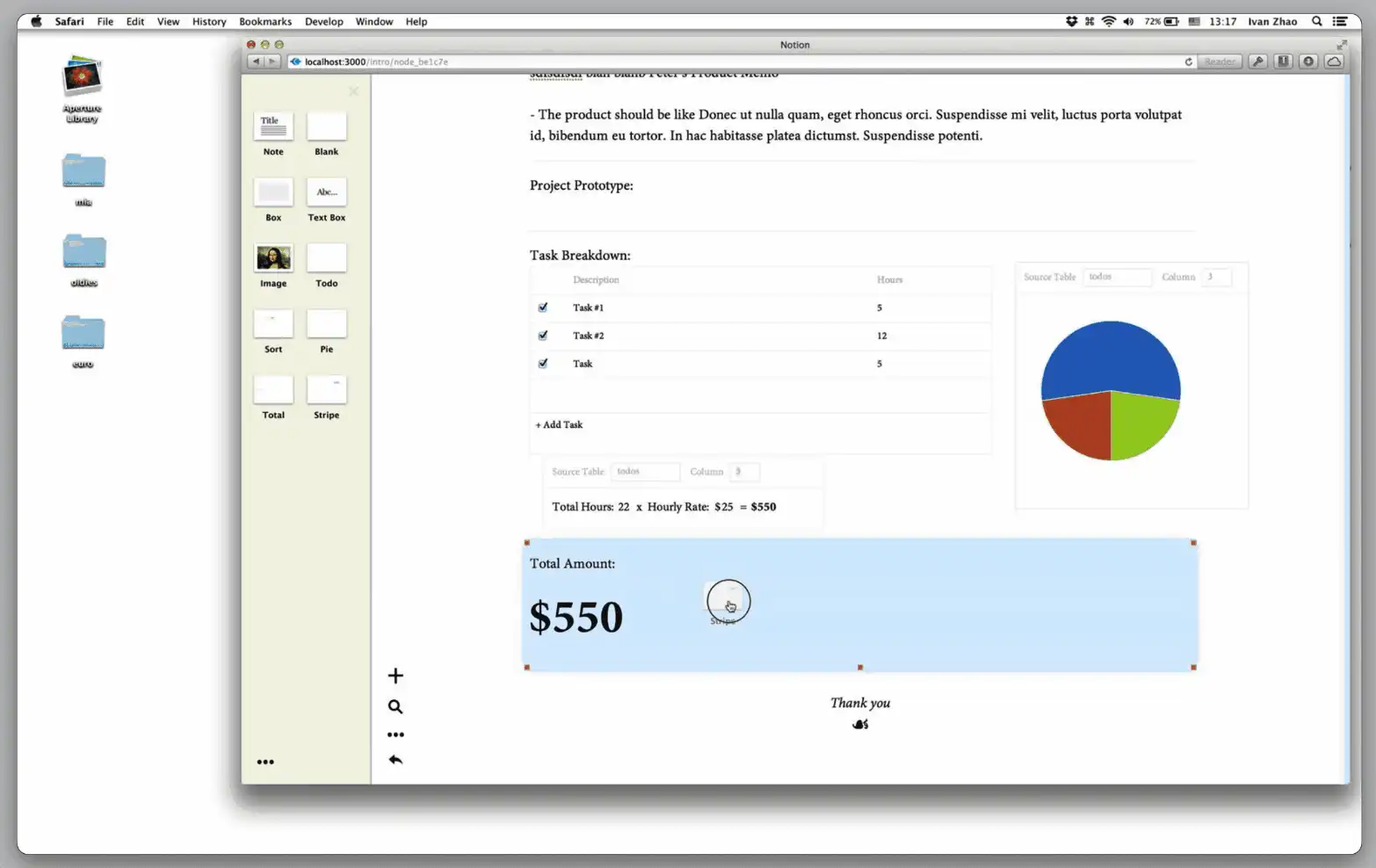 原因在于,Notion 初始的建站定位和产品理念就注定了它的功能必须以模块化的形式来实现,就像乐高积木一样。所以我们在 Demo 中看到了「页面」、「图表」、「计数」,以及「图片」和「文字」等基础功能被封装在一个个模块(Block)中,你需要从侧边栏中将这些模块拖入到页面内,才能让它们互相组合并发挥效用。