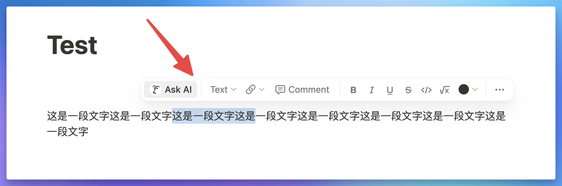 选中文字后就会浮现新的工具栏: