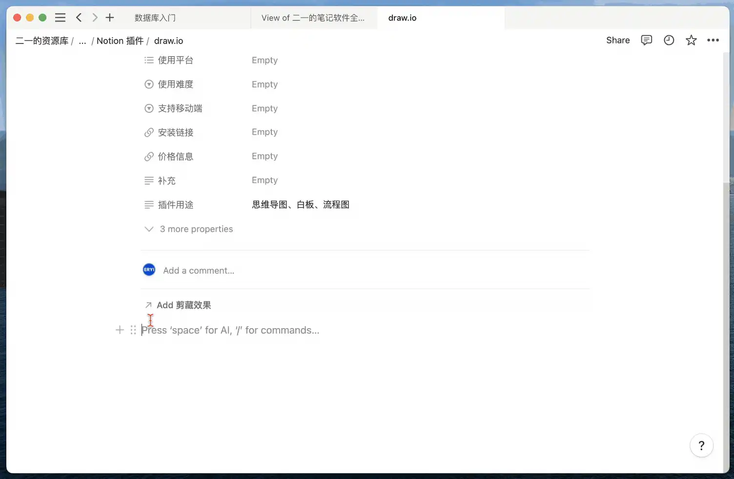 绘制完成后生成共享链接(Share),然后将链接直接粘贴到 Notion 页面中即可成功识别并生成预览画面: