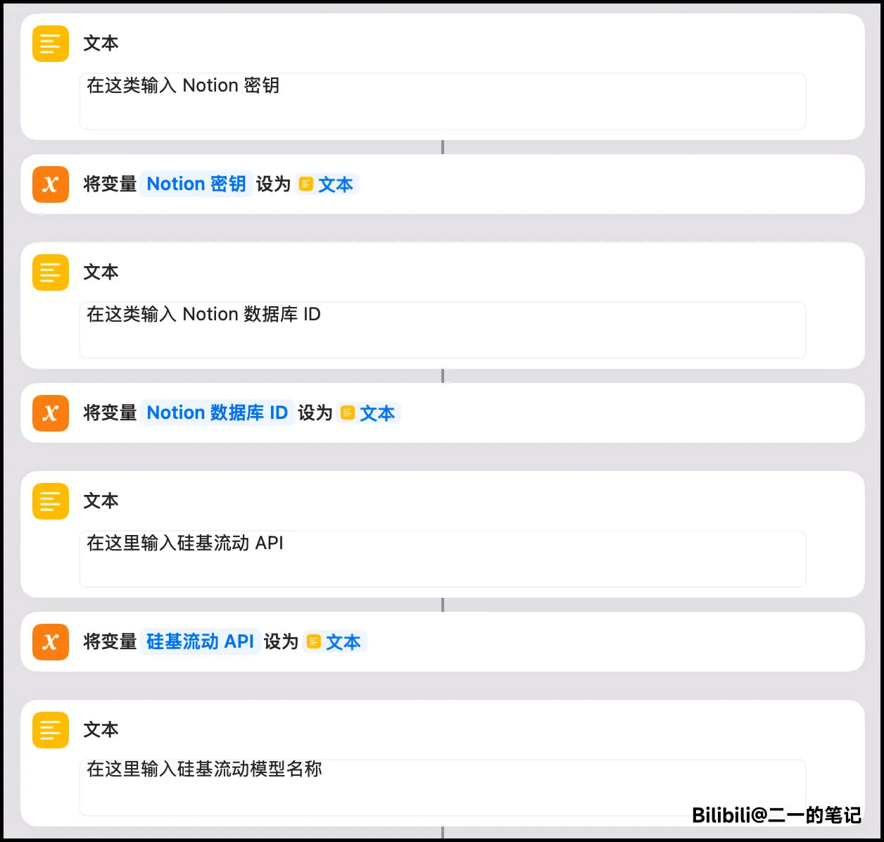 - 按照快捷指令里的提示,修改下图四个地方的参数,请替换「