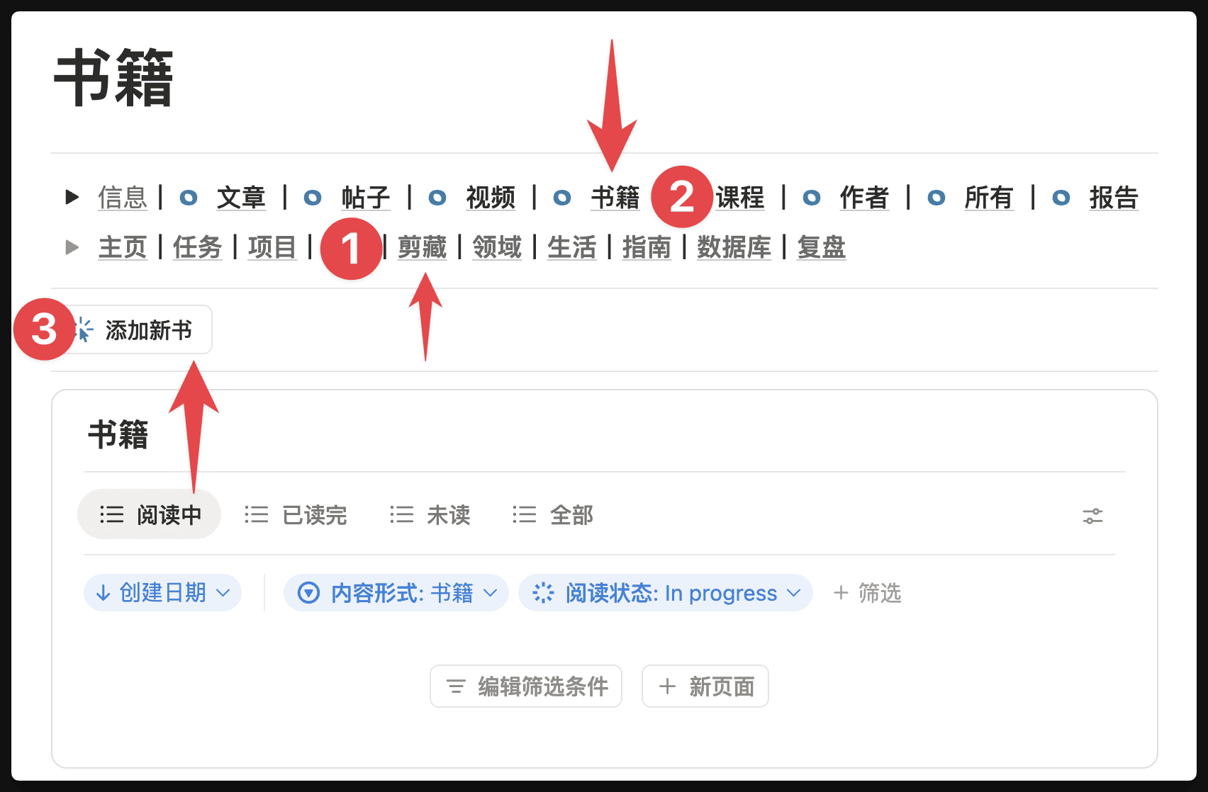 在【剪藏 - 书籍】页面的底部,会有所有的书单分类