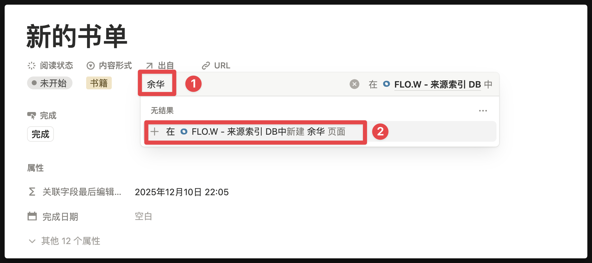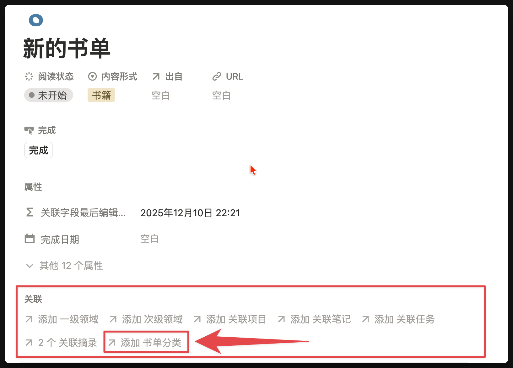 点击【添加新书】按钮之后,就会自动创建一个页面,你就可以在这个页面里记录书籍名称、作者、阅读进度等字段信息。