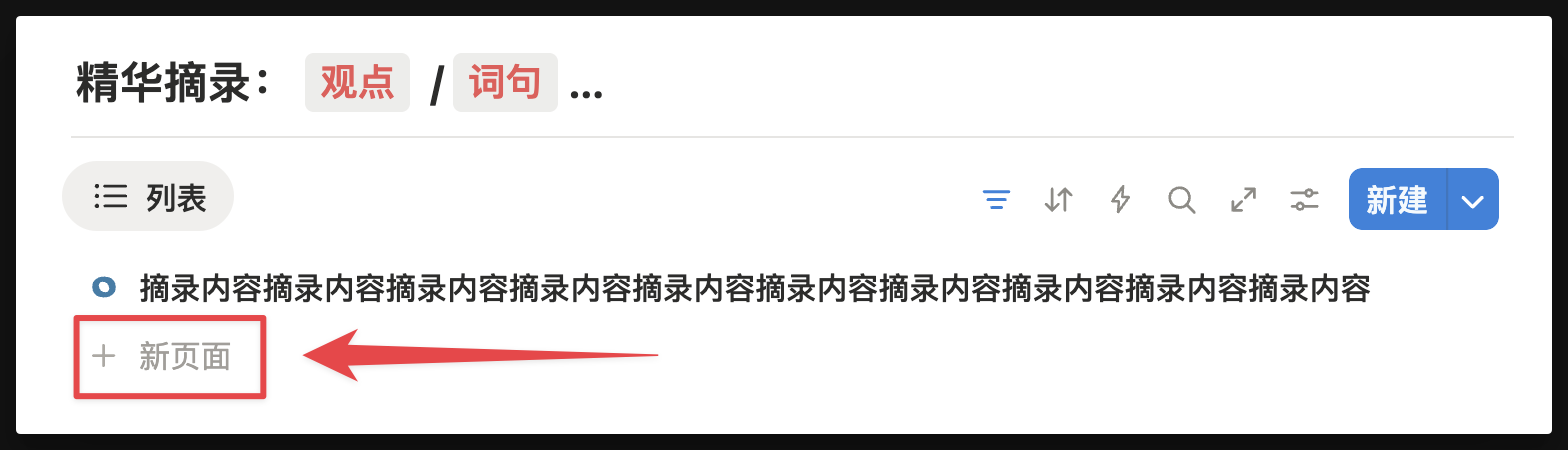 - 摘录管理 DB:主要服务于深度的阅读流。它用于记录书籍中的「原文」,即那些你想保留的、未经修改的原始句子或段落。