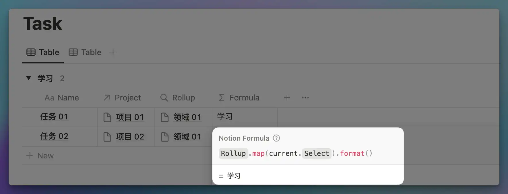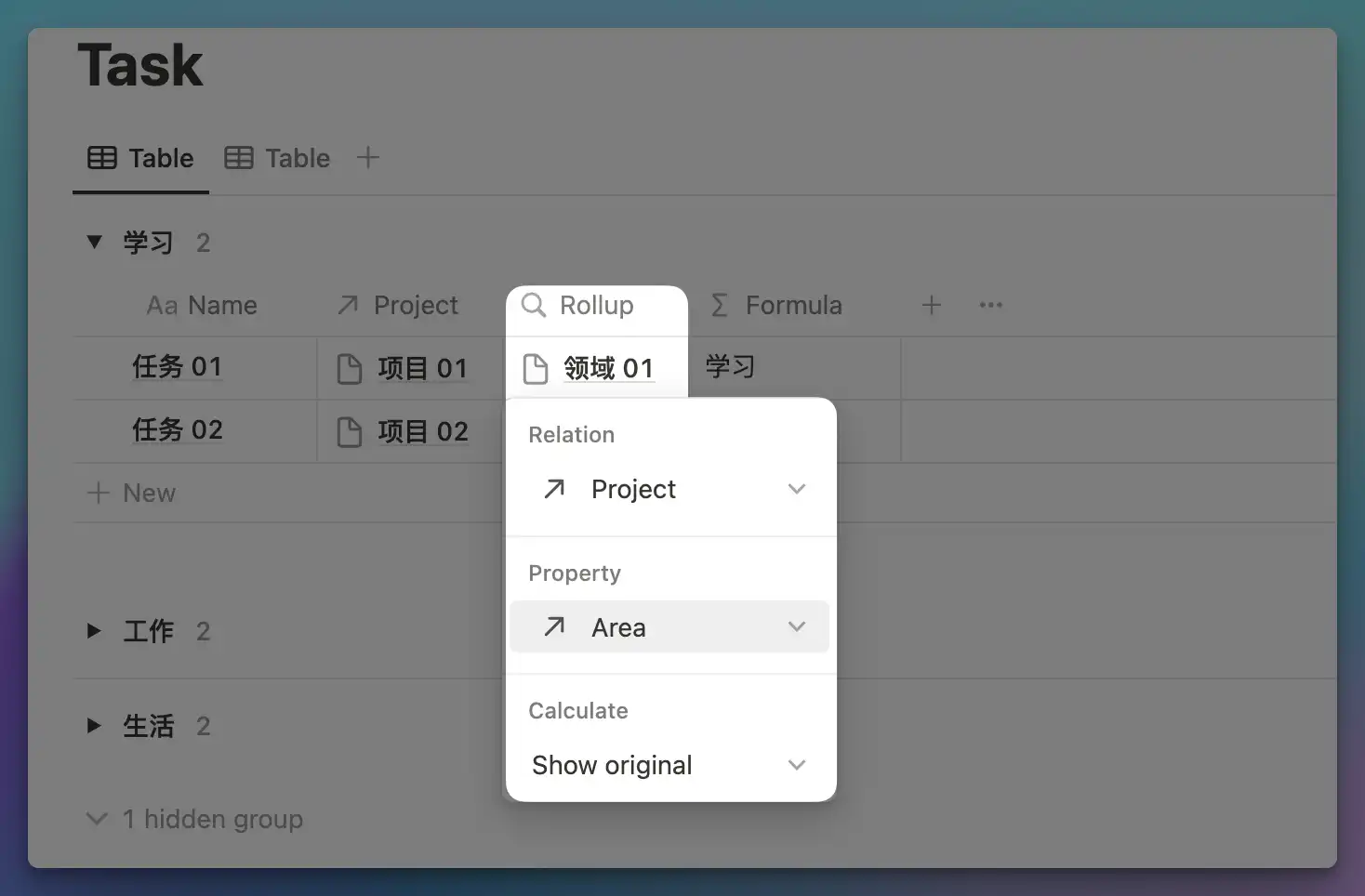 Step 2: Add a Rollup and Formula in the Task Database
